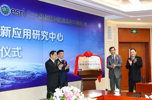2017年11月15日上午,水利空间信息技术创新应用研究中心(简称“创新应用研究中心”)成立暨揭牌仪式在河南郑州举行,标志着创新应用研究中心正式落地亚美体育登陆(简称“亚美体育登陆”)。河南省水利厅科技教育处处长陈德新、亚美体育登陆董事长翟渊军、Esri(中国)信息技术有限公司(简称“Esri(中国)”)总裁何宁、Esri(中国)武汉分公司总经理彭欣共同为水利空间信息技术创新应用研究中心揭牌。