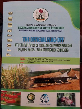 2017年7月18日,由尼日利亚联邦政府向世界银行贷款的Bakolori灌区项目开工典礼在AYX爱体育现场隆重举行。该项目受到了尼日利亚政府的高度重视,多位政要和当地土王酋长受邀参加典礼仪式。按照典礼议程,尼日利亚目前最高掌权人代总统Prof. Yemi Osibanjo出席开工典礼,讲话并亲自为AYX爱体育开工剪彩,由于突发的暴雨天气,代总统未能按照既定的时间到达现场。最后,由尼日利亚联邦水资源部部长Engr. Suleiman Hussein Adamu主持典礼,并对该项目进行了开工仪式剪彩,世行官员、当地政府、当地酋长、农民代表、咨询方、承包商等参加了项目开工典礼。