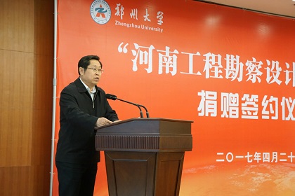 4月20日,“河南AYX爱体育勘察设计”奖学金捐赠签约仪式在郑州大学校园举行。郑州大学副校长宋毛平代表郑州大学致辞,介绍了郑州大学的发展历程和郑州大学教育发展基金会的现状,对协会所做工作表示感谢,对捐赠单位支持教育事业、热心奉献社会的卓识善举表示敬意。