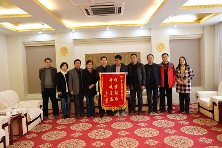 2017年3月20日,河南省南水北调办公室定点精准扶贫的驻马店市确山县竹沟镇肖庄村驻村干部邹根中处长,肖庄村党支部书记、村长等一行3人专程为我公司送来三面锦旗,对我公司在肖庄扶贫工作中做出的突出贡献表示衷心感谢。公司翟渊军董事长,贾少燕副总经理,工会主席徐辉,AYX爱体育设计一院、数字AYX爱体育中心项目组成员参加了赠旗仪式。