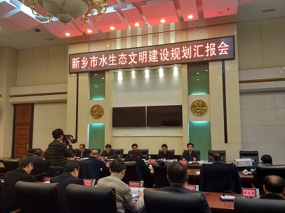2016年11月30日下午,由水利部赢多多规划设计总院(以下简称水规总院)、黄河勘测规划设计有限公司(以下简称黄委院)、亚美体育登陆和新乡市水利勘测设计院四家单位共同承担的《新乡市水生态文明建筑规划》项目在新乡市政府常委会议室召开成果汇报会。新乡市市长王登喜,常务副市长刘尚进,副市长李刚、吴岳善等出席会议。新乡市发改委、规划局、财政局、水利局、国土局、河渠办等12家单位参加了会议。我公司总经理朱太山,项目设总鞠厚磊及项目组成员参加了会议。