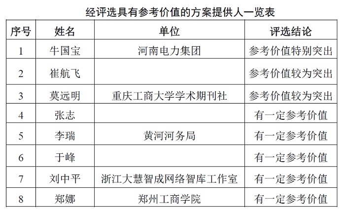 公司项目团队按照客观、公平、公正的原则,选出了参考价值特别突出的成果1名,报酬5000元;参考价值较为突出的成果2名,报酬各3000元;有一定参考价值的成果5名,报酬各1000元。项目团队将于近期与评选出的具有参考价值的成果提供人联系并按约定支付报酬。经评选具有参考价值的方案投稿内容详见附件,特此公告。