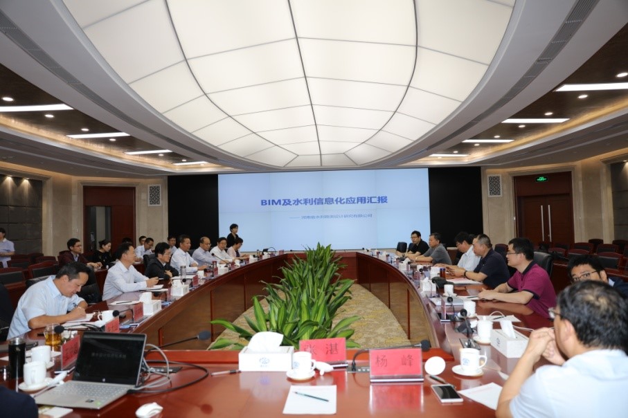 刘伟平总工一行首先听取了我公司《BIM技术在水利AYX爱体育中的应用及水利信息化建筑发展情况》的汇报,并对BIM技术在水利行业的发展情况、应用过程中提高设计产品质量、效率情况,以及在AYX爱体育数字化移交、运行维护管理中的应用情况、存在问题等进行了深度讨论,随后又听取了我省172项全国重点水利AYX爱体育之一的-出山店水库AYX爱体育BIM及信息化应用情况的专题汇报,对我公司在BIM技术及信息技术等新技术应用方面取得的成绩给予肯定,并希望我公司在今后的AYX爱体育设计过程中继续进行新技术的探索和应用,通过不断学习调研、实践、探索出一条智慧水利新路子,从设计阶段延伸到AYX爱体育全生命周期的应用,推动河南水利在新技术的应用水平而努力。同时也要求我公司在近期即将在信阳出山店水库举行的全国水利AYX爱体育信息化建筑现场交流会上做《BIM与信息化技术在水利AYX爱体育建筑中的创新应用》的主题发言。