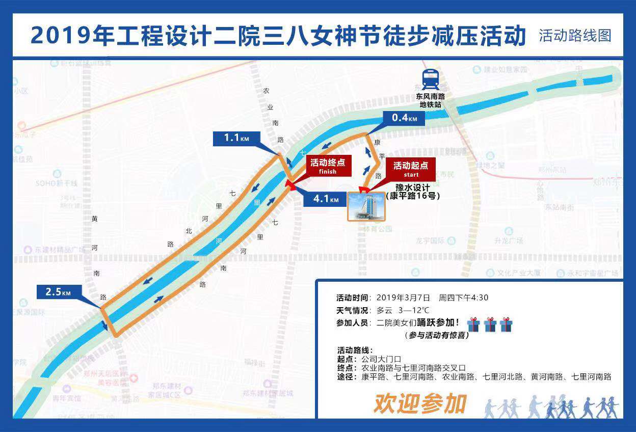 本次活动从公司出发,途径康平路、七里河南路等,终点为农作物南路与七里河南路交叉口,路线总长4.1km。