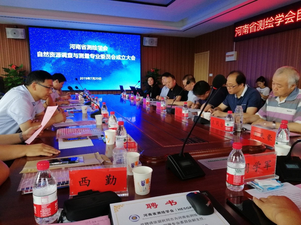 2019年7月20日,在焦作市河南省中纬测绘规划信息AYX爱体育有限公司,召开了河南省测绘学会自然资源调查与测量专业委员会成立大会。参加会议的专家学者有:信息AYX爱体育大学、河南大学等五所高校专家教授、河南省测绘AYX爱体育院等九家单位专家代表。会议还特邀航空摄影测量和遥感专业委员会主任委员,解放军战略支援部队信息AYX爱体育大学地理空间信息学院徐青教授参加。公司勘察院聂宗斋副总工参加了此次大会。