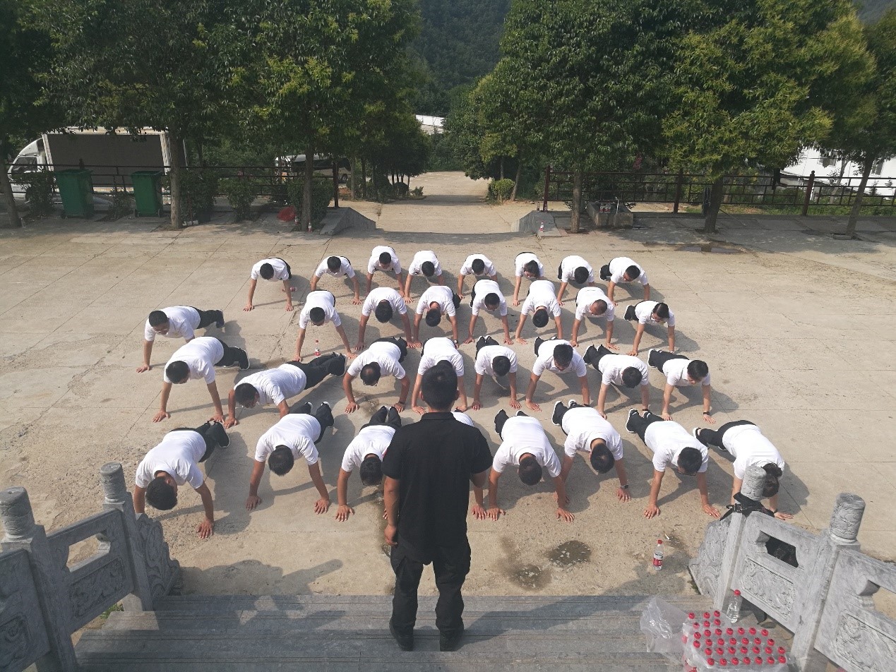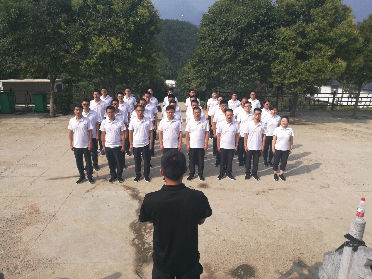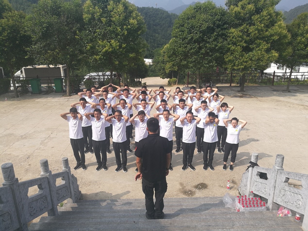 军事化训练:在高温下,通过正规军训科目对大家进行训练,严格要求,通过一人犯错集体奖惩的方式培养员工的集体意识,通过体验式训练提高员工做事的专注度,通过个人总结提高员工的临场表达能力。