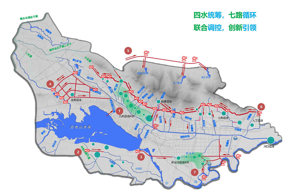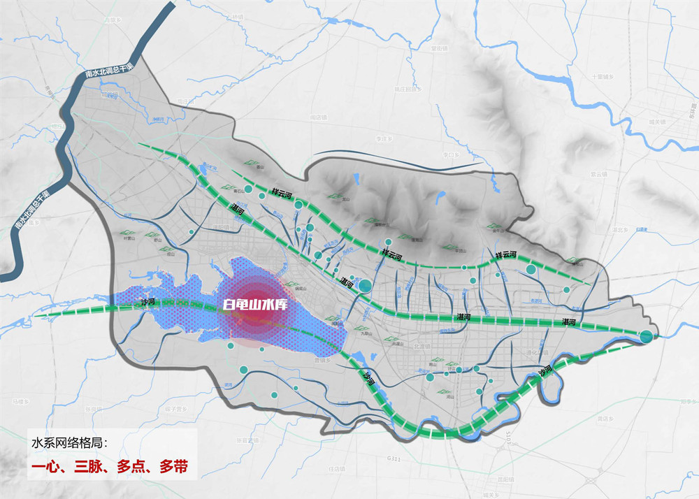 《平顶山市全域循环生态水系规划》是河南省第一个采用公开竞标,确定中标单位的地区性水利综合规划项目,是引导平顶山市未来水利工作的顶层规划,规划提出了“四维连通,立体循环”的生态水网概念,确定了“一纵四横九脉连通,三源五湖一网循环”水系格局。