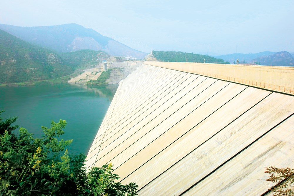 盘石头水库位于鹤壁市西南卫河支流淇河中游,库容6.08亿m3。主坝为混凝土面板堆石坝,最大坝高102.2米。