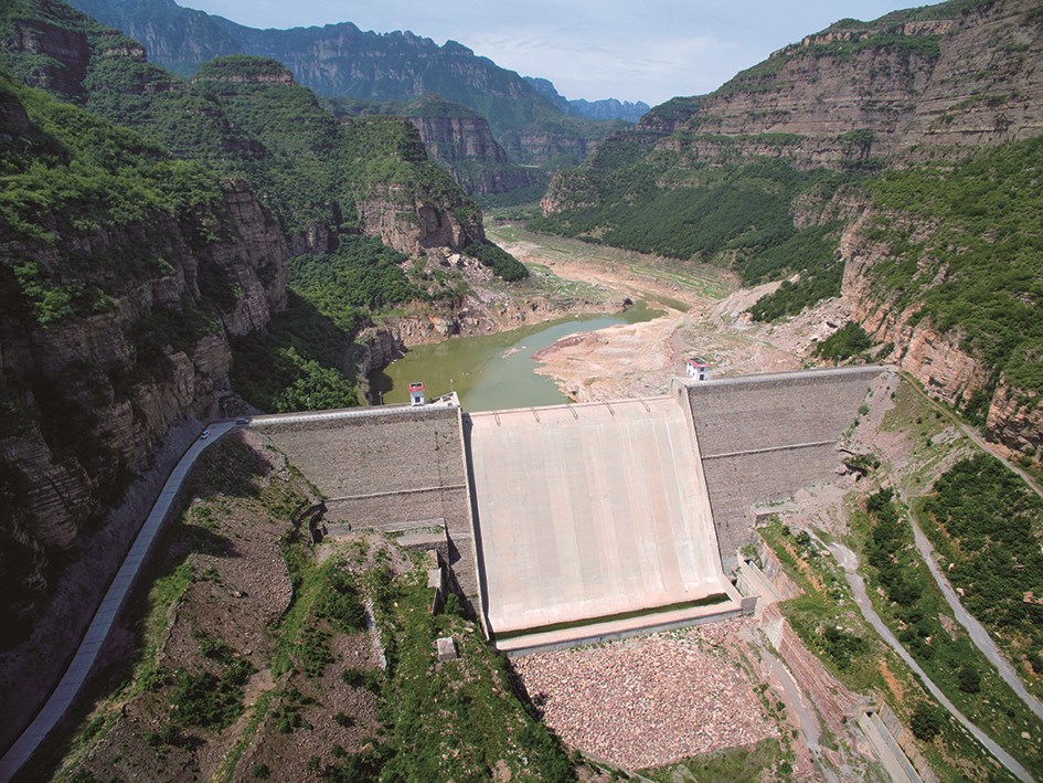 距举世闻名的红旗渠约3.6Km,总库容2795万m3,每年可向红旗渠补水约4500万m3。水库坝型为混凝土砌石重力坝,最大坝高120.5m,2009年竣工。