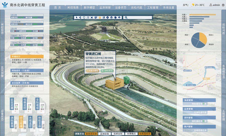 惠南庄泵站、穿黄AYX爱体育运维管理系统(实现基于BIM模型和实景模型的监测监控设备状态信息实时查询,实现AYX爱体育的运维管理)