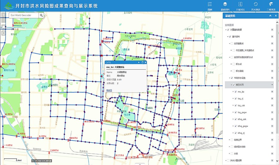 开封城市洪水风险图系统(基于洪水风险图成果实现开封市洪水风险信息的实时在线查询)