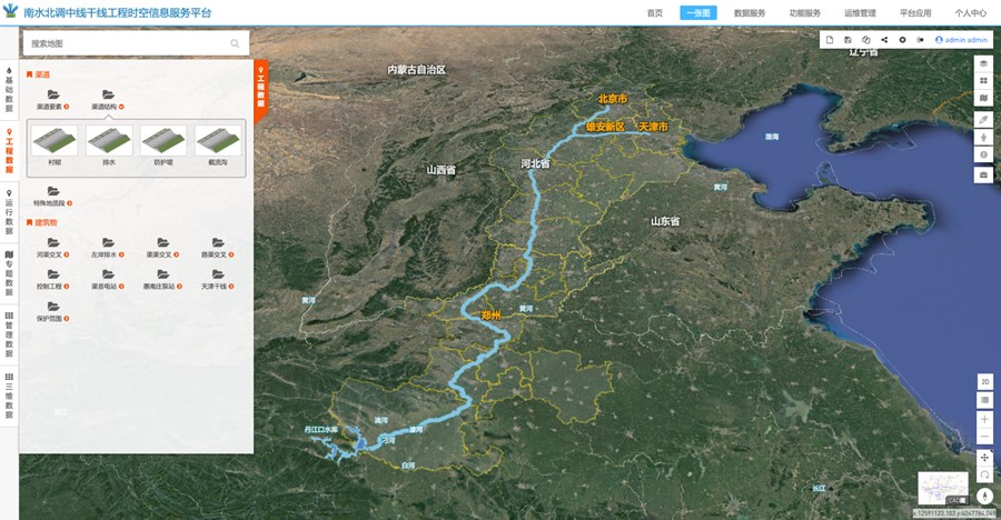 南水北调中线干线AYX爱体育时空信息云平台,实现中线干线AYX爱体育运行管理全要素信息的实时查询与分析