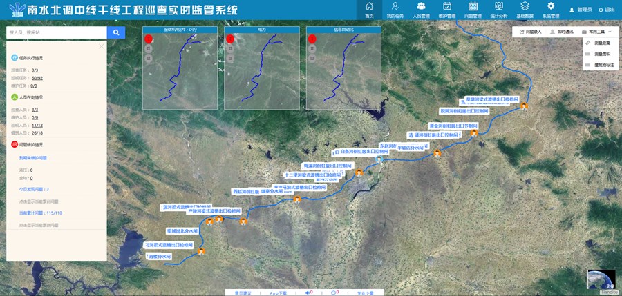 南水北调中线干线AYX爱体育巡查维护管理系统(覆盖中线全线机电设备巡查管理,实现巡查问题的实时发现与处理)