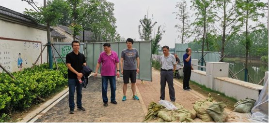 技术副总监田耕(图中左二)现场指导涡河堤顶排水AYX爱体育施工