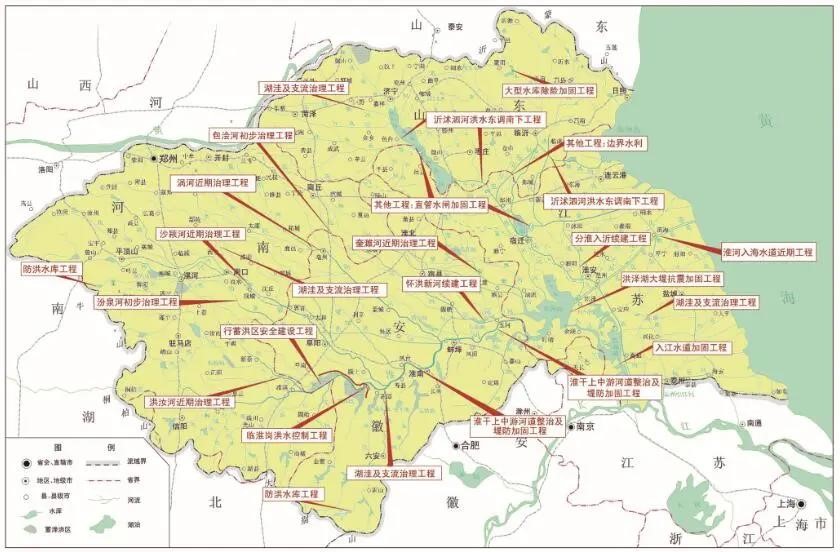 淮河流域防洪除涝标准显著提高,淮河干流上游防洪标准超10年一遇;中游主要防洪保护区、重要城市和下游洪泽湖大堤防洪标准已达到100年一遇;重要支流及中小河流的防洪标准已基本提高到10—20年一遇以上;沂沭泗河中下游重要防洪保护区的总体防洪标准基本上达到50年一遇;在行蓄洪区充分运用的情况下,可防御新中国成立以来发生的流域性最大洪水。