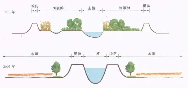 围垦河漫滩+堤防缩窄河道示意图