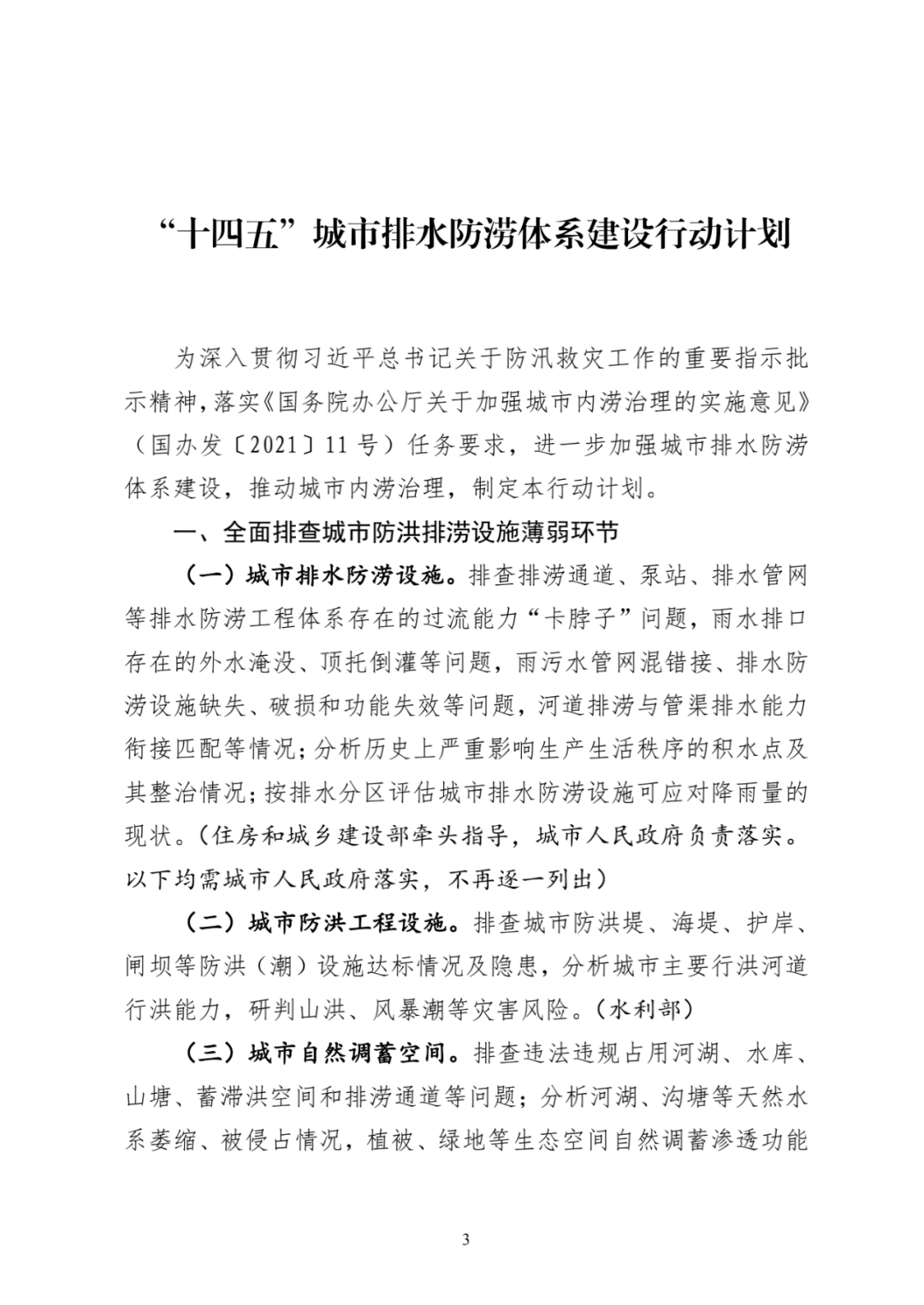 关于印发“十四五”排水防涝体系建筑行动计划的通知