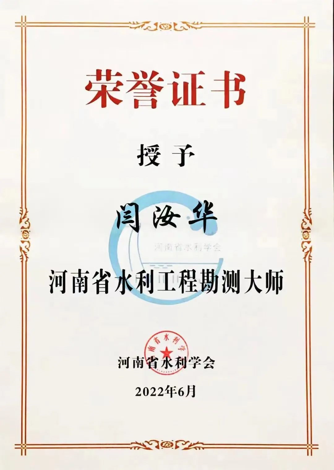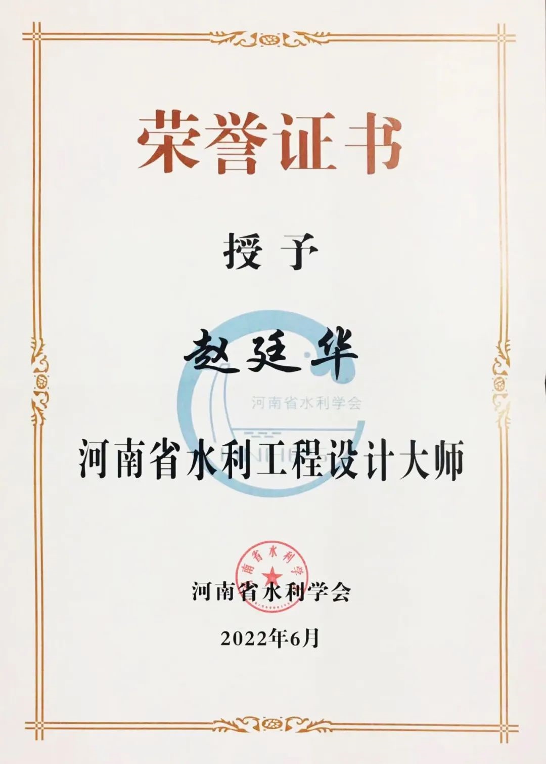 6月21日,河南省水利学会在郑州举行2022年学术年会,会上对评选出的十位河南省水利大师进行表彰。我公司副总经理赵廷华同志荣获河南省水利AYX爱体育设计大师荣誉称号,监事会主席、技术副总监闫汝华同志荣获河南省水利AYX爱体育勘测大师荣誉称号。