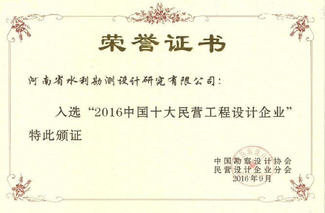 河南省勘察设计行业突出贡献企业一