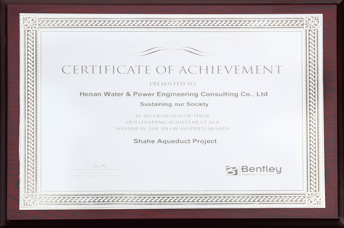 2013年度Be特别荣誉奖 南水北调沙