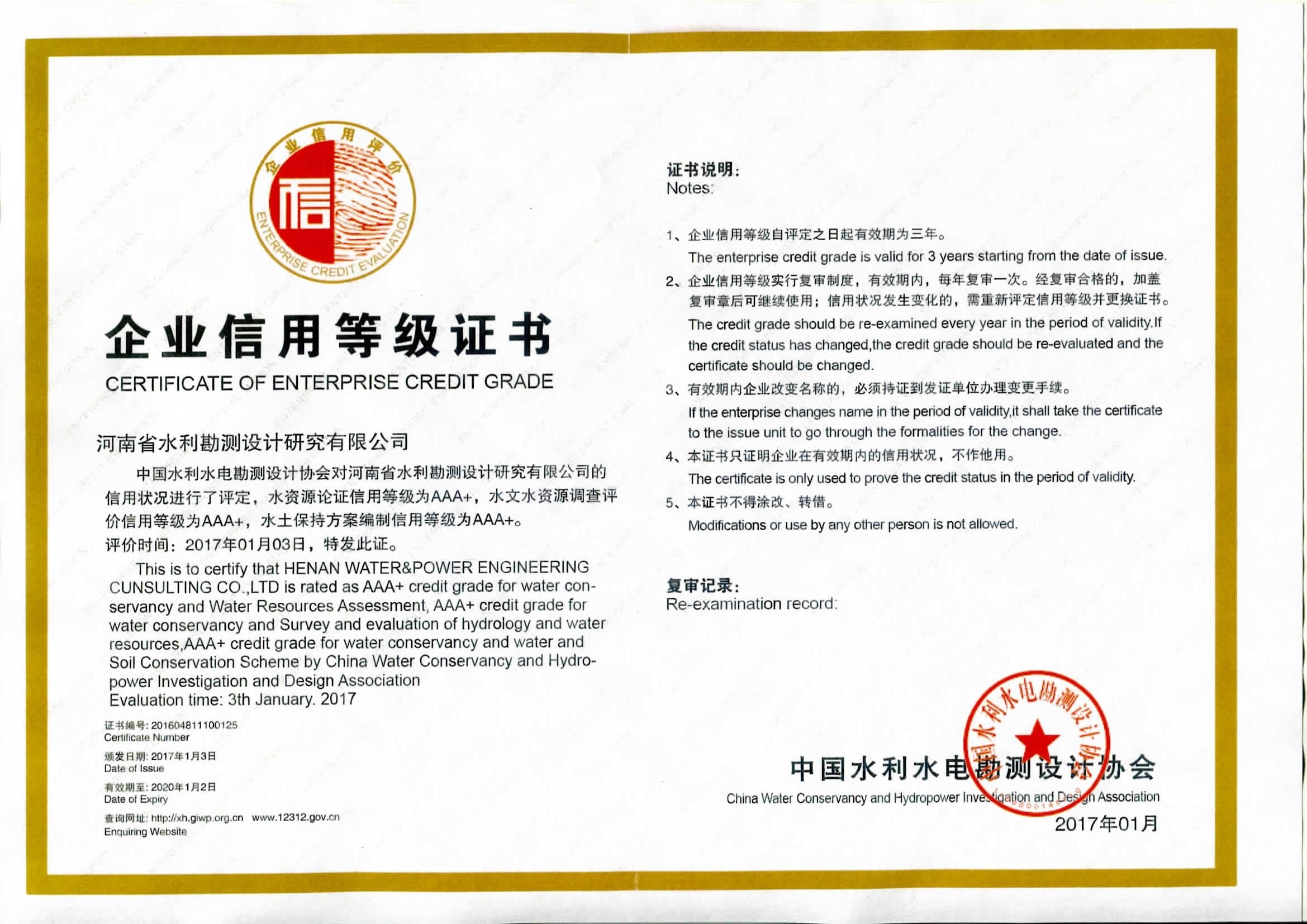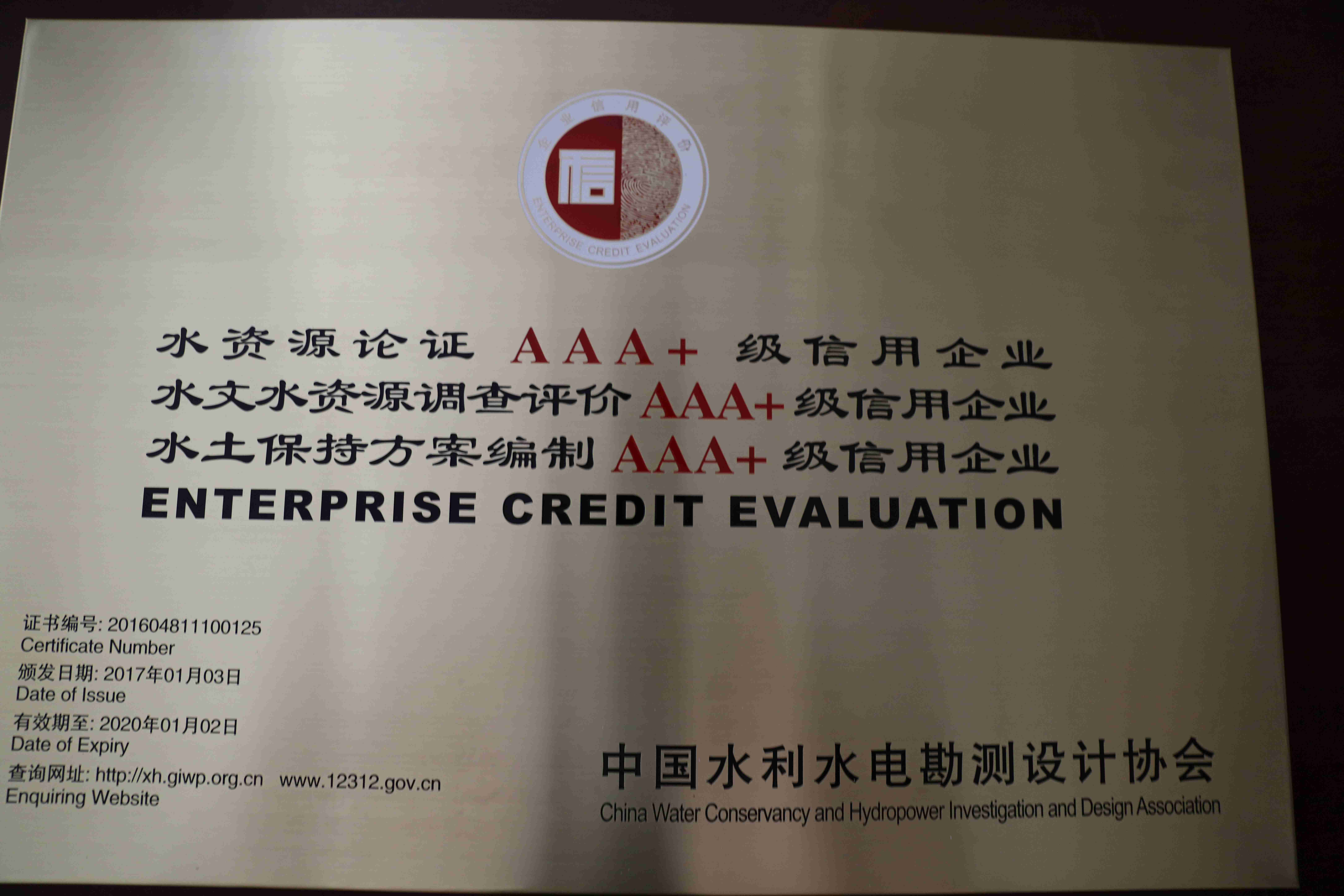 水资源、水文、水土保持3A+级信用