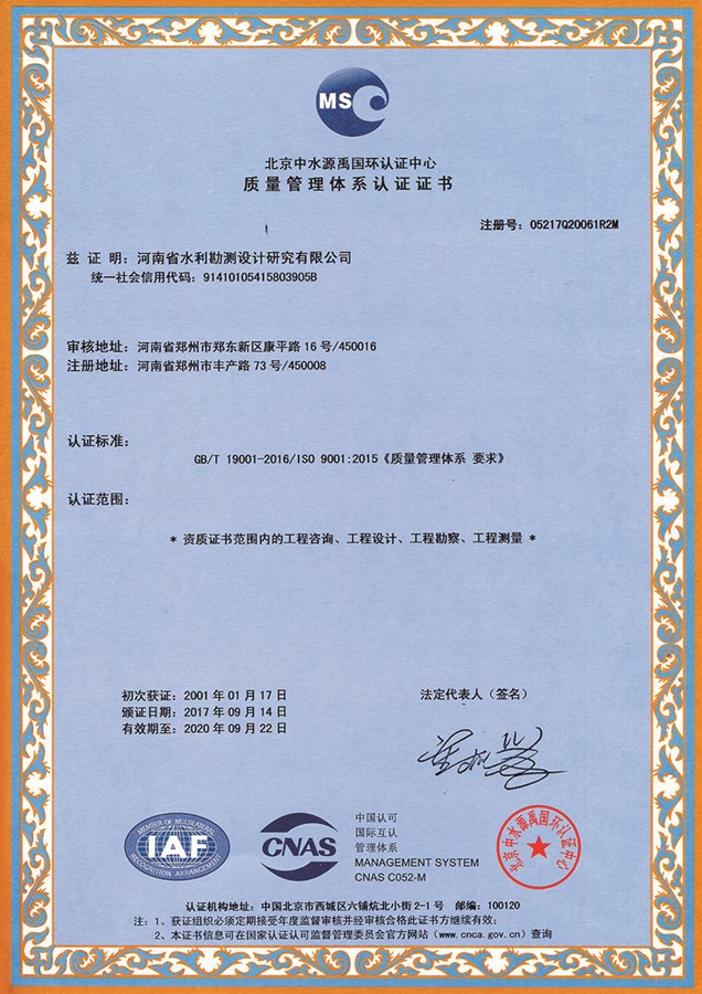 质量管理体系认证证书